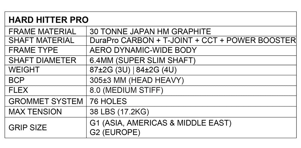 Hard Hitter Prodelivers explosive smashes with every stroke. The head-heavy balance and medium-stiff shaft help transfer power more effectively.